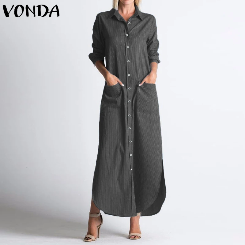 Discount VONDA Long Shirt Dress Women 2019 Autumn Casual Lapel Neck Long Sleeve Party Dress Sexy Buttons Spl